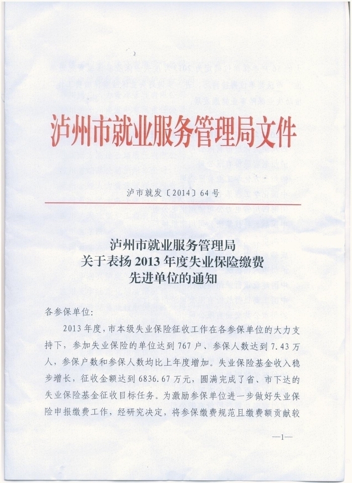 2014年就業(yè)局表彰通知